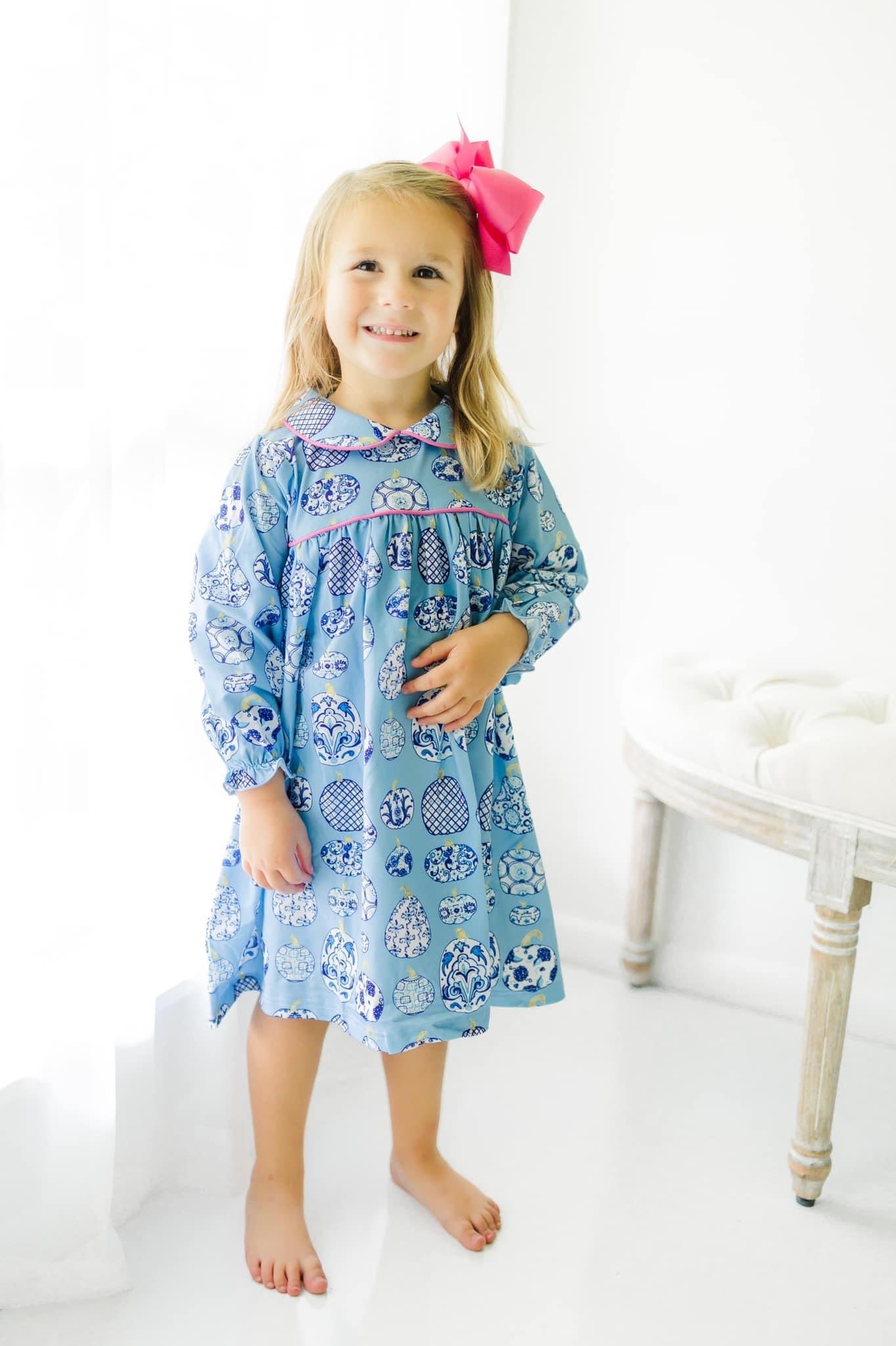 Chinoiserie Pumpkins on Periwinkle Dress