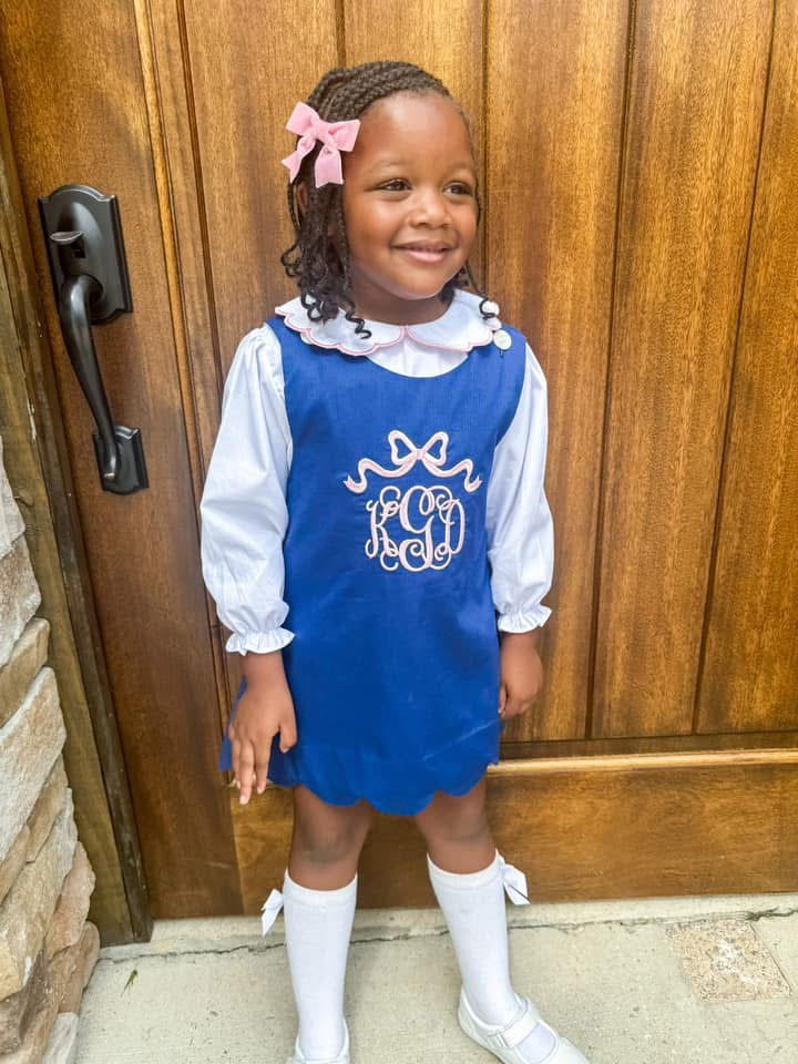 Navy Pique Bow Jumper-Includes Embroidered Bow Collar
