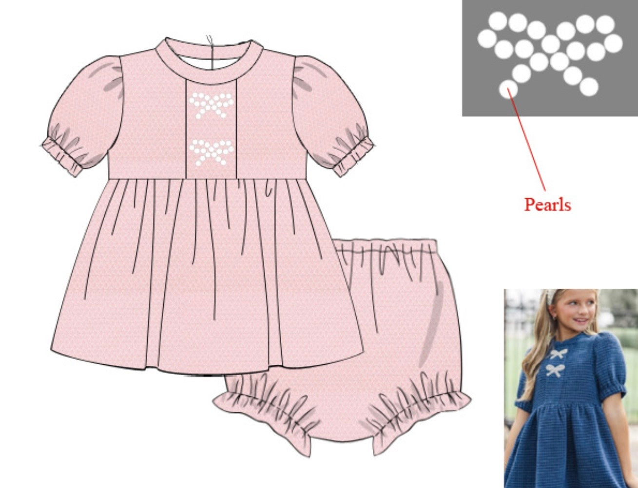 Pearl Bows On Pink Bloomer Set